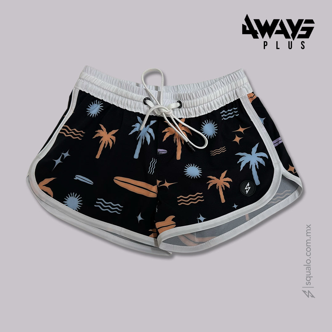 Traje de baño tipo Boardy, con tela 4WAYS lo que significa que estira para los 4 lados, esta tecnología funciona para el mejor desempeño en todos los deportes de gran movimiento, ya que no te limita y es bastante cómodo. Además de secado rápido.